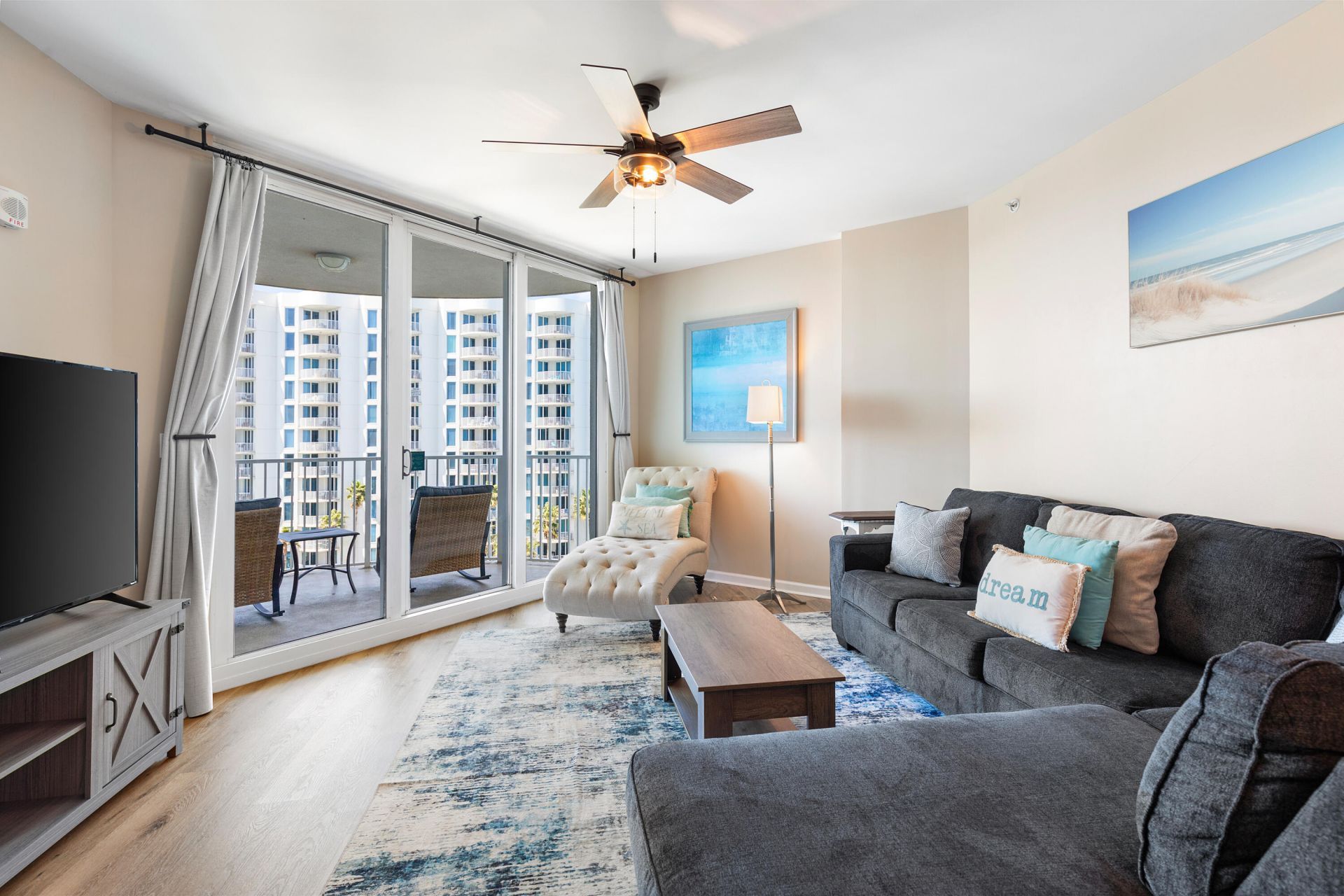 GULF VIEWS!!!Enjoy breathtaking Gulf views from this beautifully maintained 2-bedroom, 2-bath condo in Destin, located on the 7th floor of the East Tower at The Palms of Destin. Overlooking the resort's spectacular lagoon-style pool, this fully furnished, turnkey unit is rental-ready, making it an ideal vacation home, investment property, or second home near the beach.The open-concept living area features luxury LVP and tile flooring, comfortable seating, and direct access to a private balcony with stunning Gulf and resort views. The kitchen offers granite countertops, refrigerator, dishwasher, microwave, ample cabinetry, and a breakfast bar.The primary bedroom features floor-to-ceiling windows with abundant natural light. Owners and guests enjoy The Palms of Destin's exceptional resort-style amenities, including the lagoon pool, hot tub, fitness center, indoor pickleball, tennis and basketball courts, on-site dining, coffee shop, and beach shuttle.Located minutes from Destin's white-sand beaches, shopping, dining, and entertainment, this property offers the perfect blend of coastal living and strong rental potential.